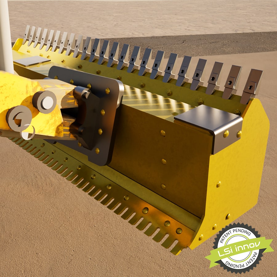 La lame à dents est spécialement conçue pour défaire le sol durci par le temps, facilitant ainsi l’extraction des roches enfouies dans le sol.